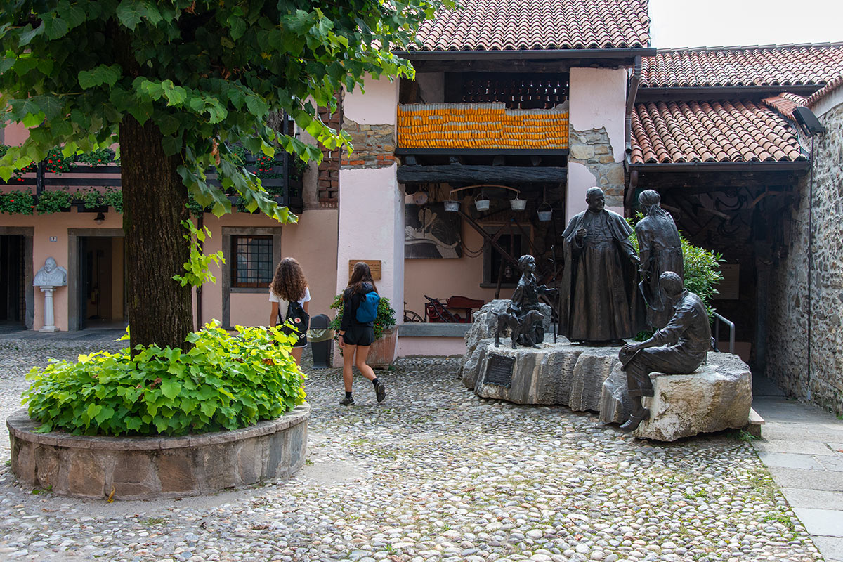 Gli spazi del piano terra si presentano ai visitatori come piccole finestre aperte sul mondo contadino di fine ‘800 e radunano arnesi da lavoro. Al piano superiore si visitano due delle stanze in cui la famiglia viveva. La prima è quella in cui il 25 novembre 1881 nacque Angelo, quarto dei tredici figli avuti da Marianna Mazzola e Giovanni Battista Roncalli. Nella “Stanza delle sorelle” si ripercorre il cammino di Angelo Roncalli, da giovane sacerdote a pontefice: a scandirne le tappe, cinque abiti originali, una serie di altri effetti personali e la scrivania a cui, a soli quindici anni, iniziò la stesura del "Giornale dell’Anima", il diario che lo accompagnò per tutta la vita.